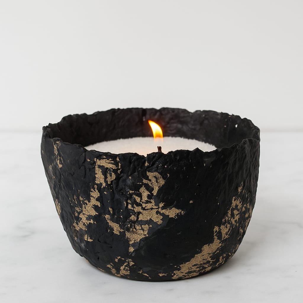 Gracias a su resistencia y tamaño, es perfecto para acompañar tus velas perladas Palmaria, aportando un toque sofisticado y contemporáneo a cualquier ambiente. Una pieza que equilibra la calidez del trabajo manual con la elegancia del contraste entre el negro y el dorado.
