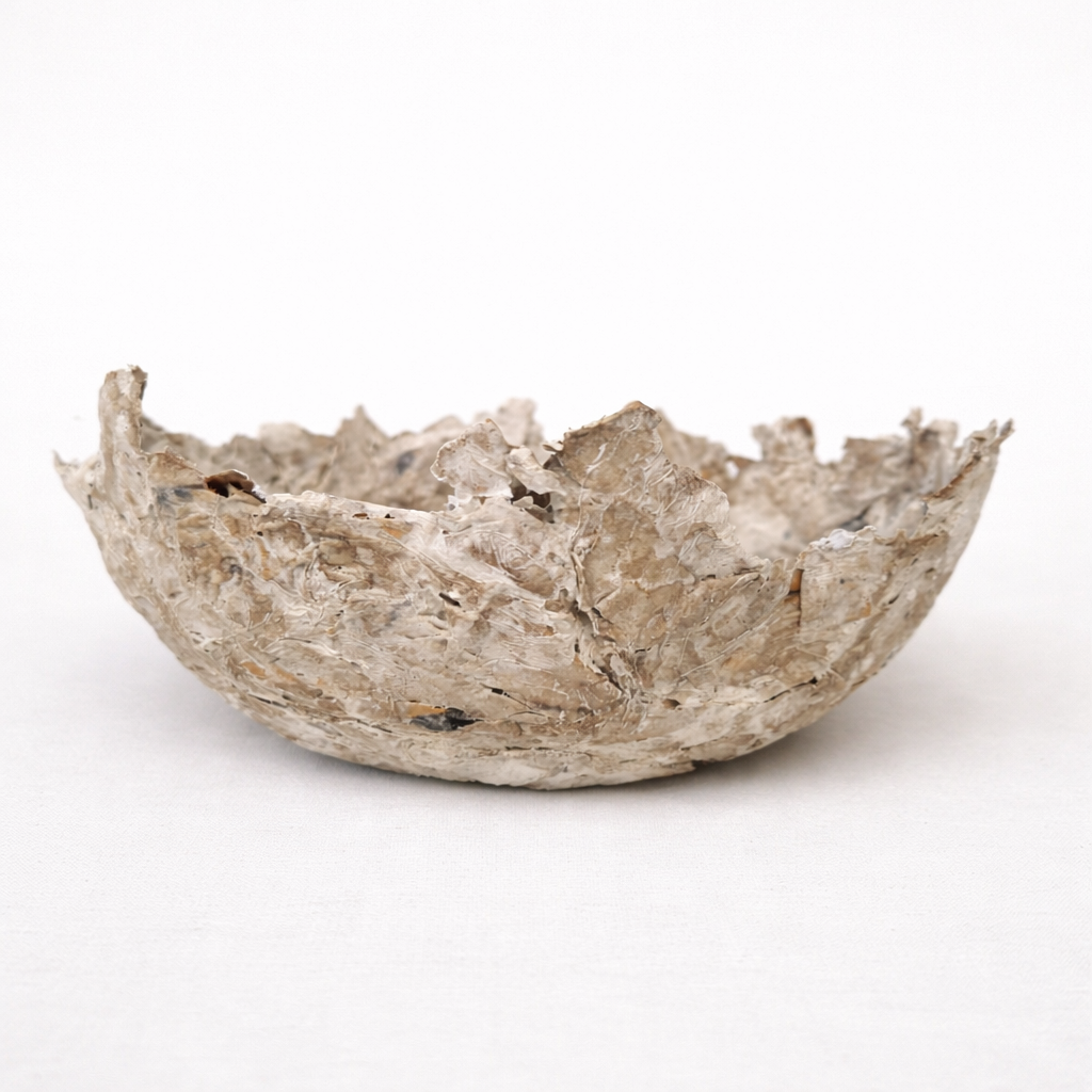 Inspirado en las formas orgánicas y los tonos suaves de la tierra, el Cuenco Decorativo Palmaria Geo es una pieza hecha a mano que celebra la imperfección natural y la belleza de lo artesanal. Su textura irregular y su acabado en café claro transmiten calma, calidez y una conexión profunda con lo natural.