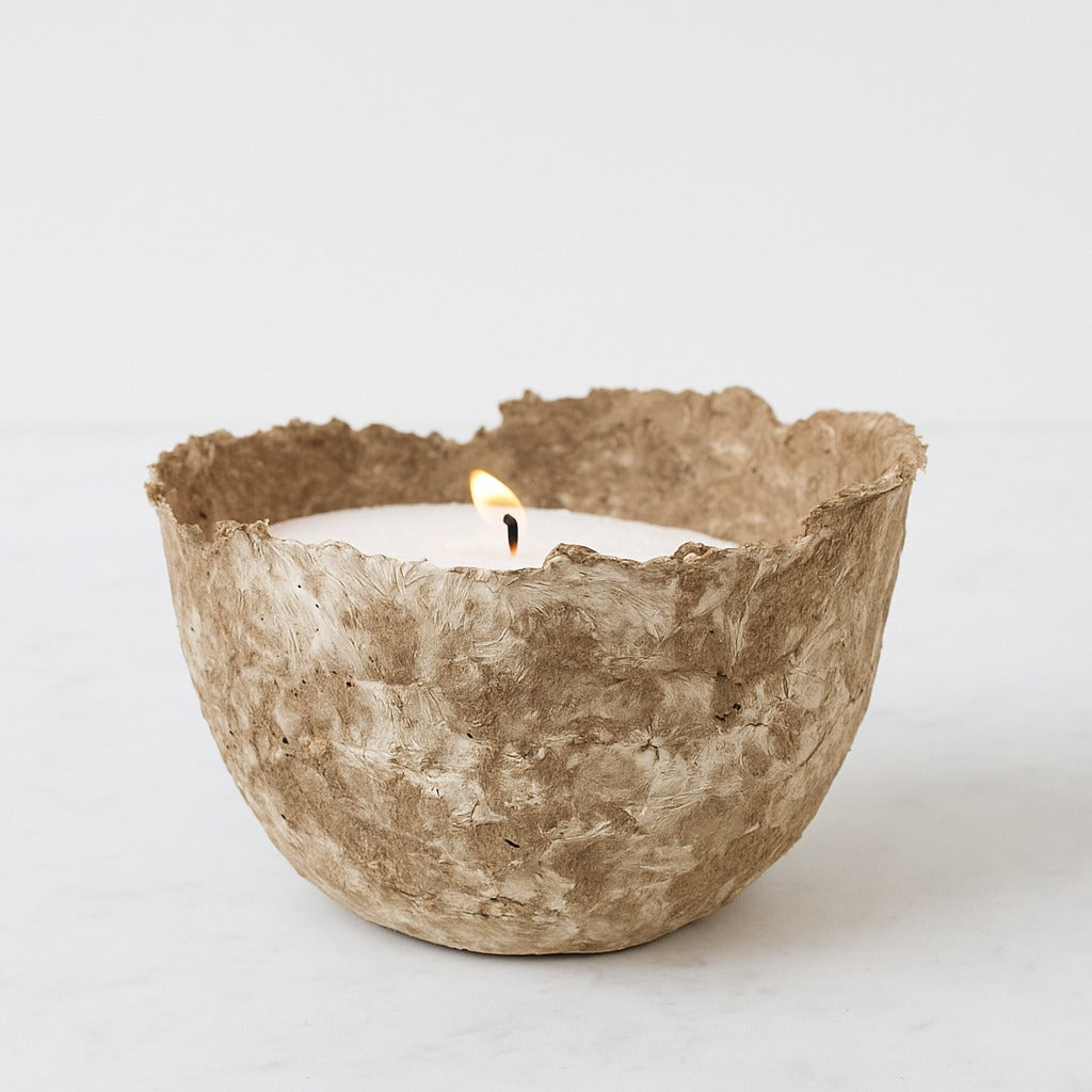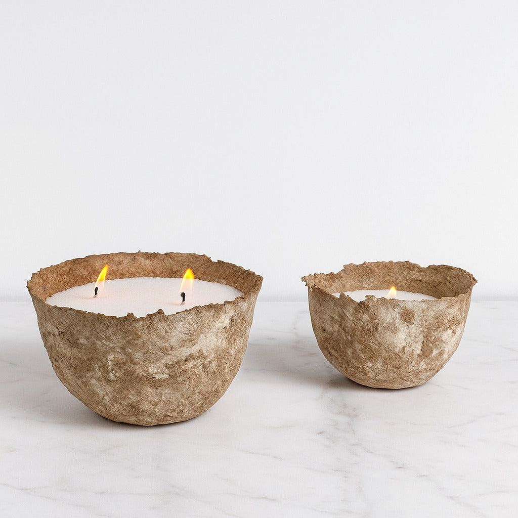 Elaborado a mano con papel reciclado, este cuenco decorativo destaca por su acabado en tonos blancos con suaves manchas grisáceas que reflejan la esencia del material en su estado más puro. Su textura orgánica y su diseño simple lo convierten en una pieza versátil y llena de carácter.