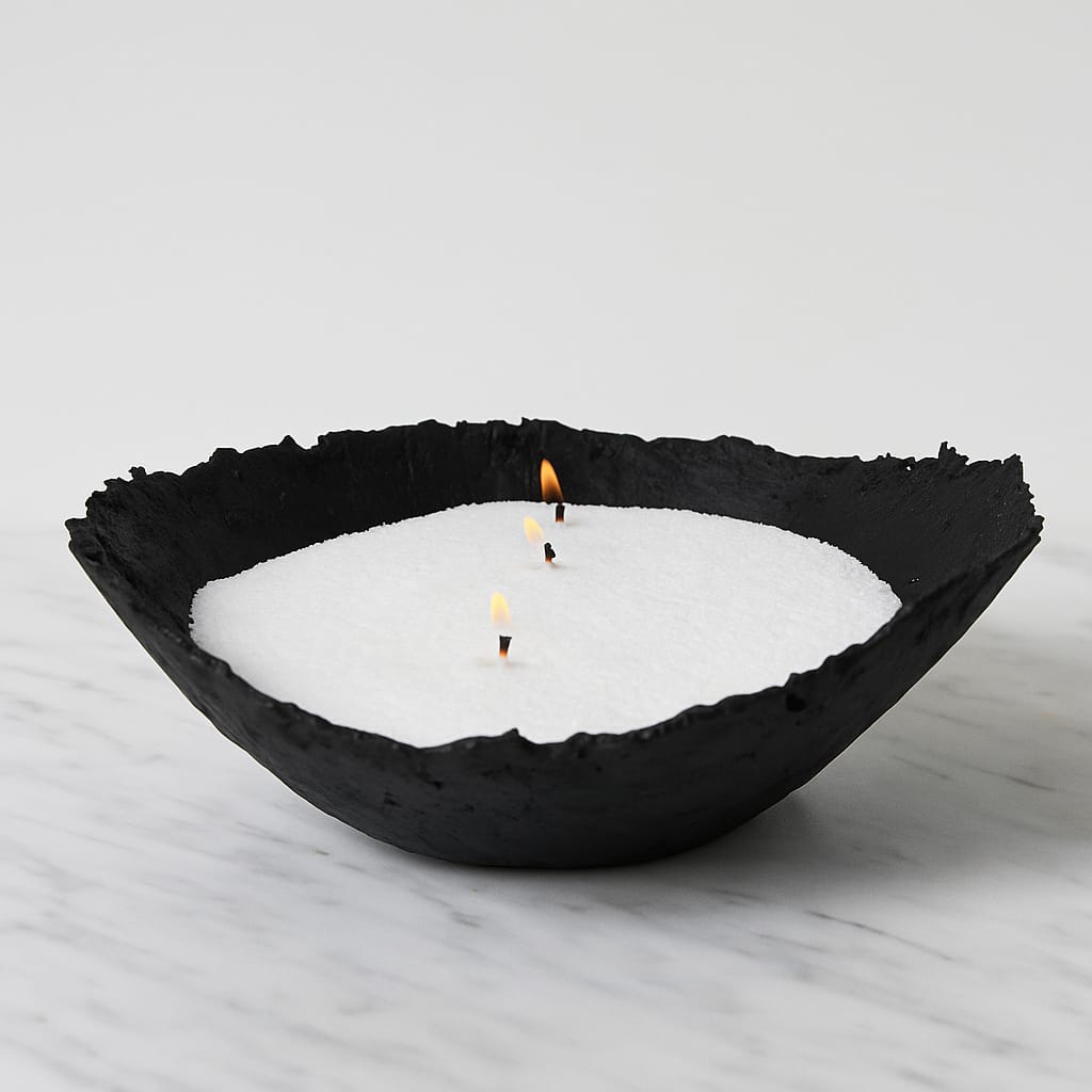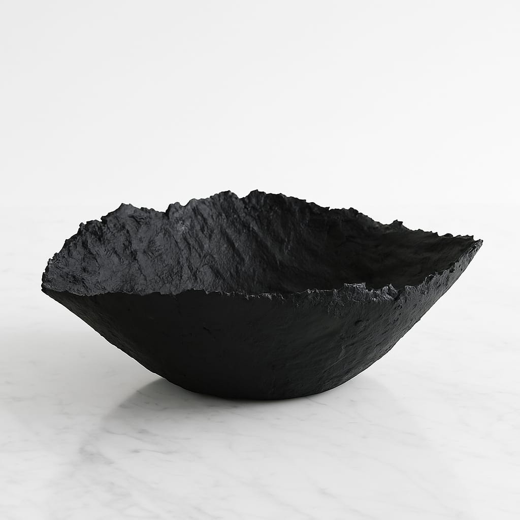 El cuenco artesanal Nala está elaborado a mano en papel reciclado, con un diseño de bordes orgánicos y un color negro profundo. Su acabado irregular y carácter único lo convierten en una pieza decorativa que irradia sofisticación natural.